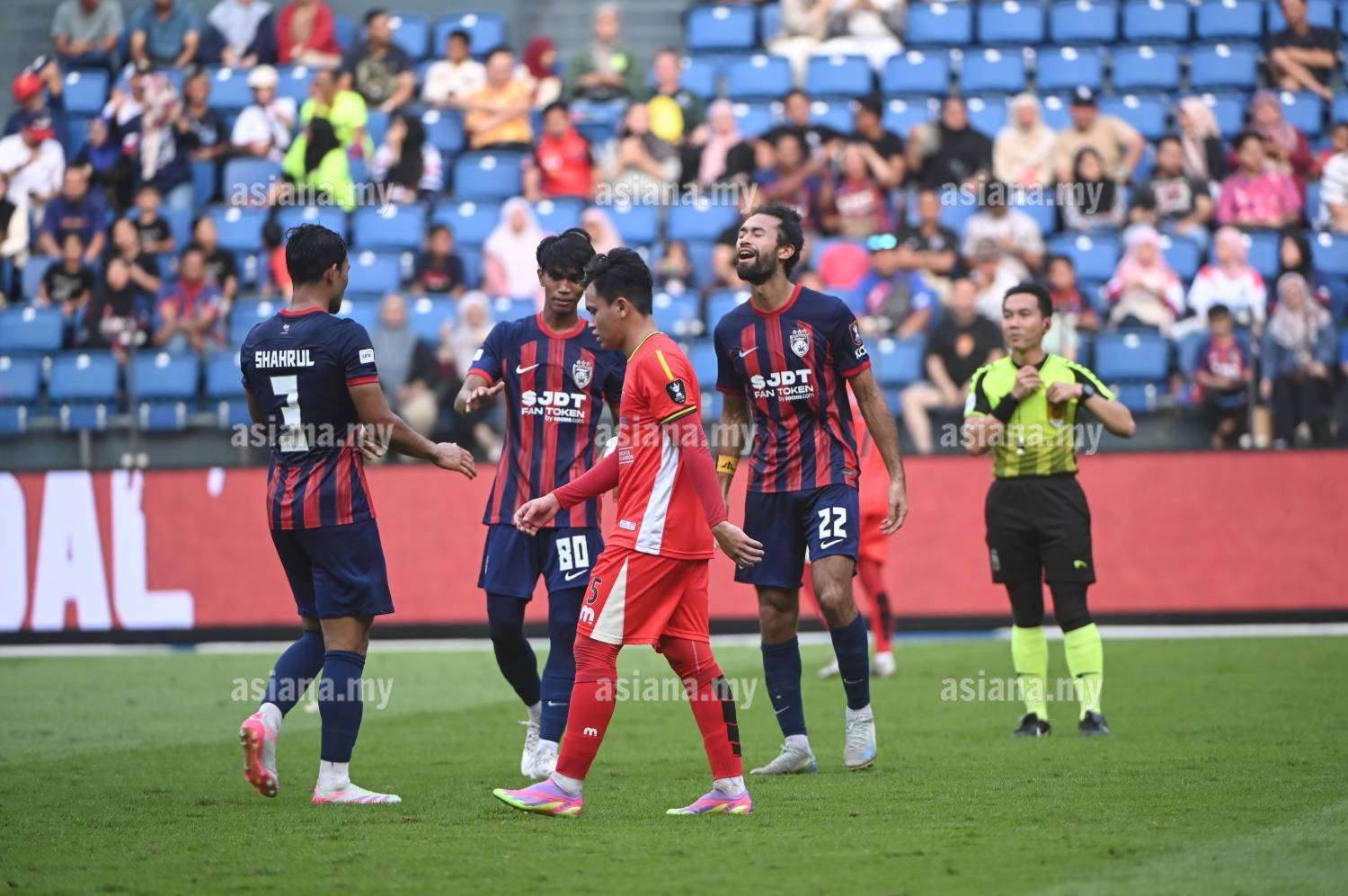 JOHOR DARUL TA'ZIM VS KUALA LUMPUR ROVERS,Piala Malaysia 2024,30 November 2024,Stadium Sultan Ibrahim,Iskandar Puteri,LA'VERE LAWRENCE CORBIN-ONG (22),DANISH HAKIMI SAHALUDIN (80),SHAHRUL MOHD SAAD (3),ZAINUL ARIFIN AHMAD LATIFI (5),Referee,
