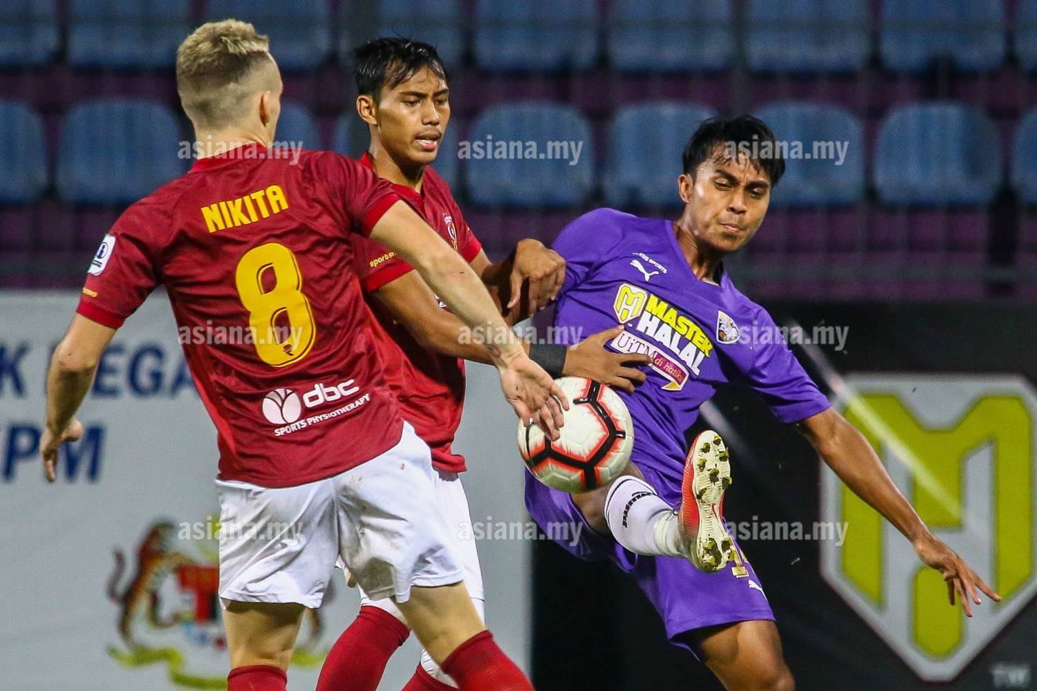 LP 85 - UiTM FC vs Selangor United,Liga Premier 2019,24 May 2019,Stadium UiTM Shah Alam,photo by Afiq Ismail/www.asiana.my,(14) MOHAMMAD AMER AZAHAR,(3) NUR IQMAL HARUN,(8) NIKITA PAVLENKO,
