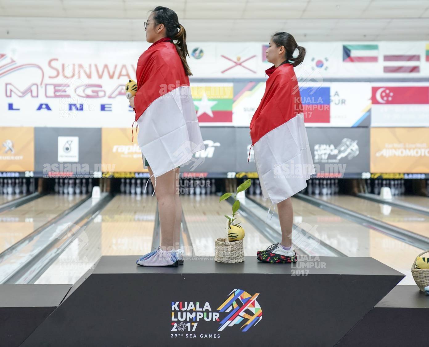 21 August 2017,Indonesia(Gold), Singapore (Silver & Bronze), Women's Doubles, Tenpin Bowling, during 29th SEA Games, at, Sunway Pyramid, on 21 August 2017, Photo by Faeiz Shah / MASOC