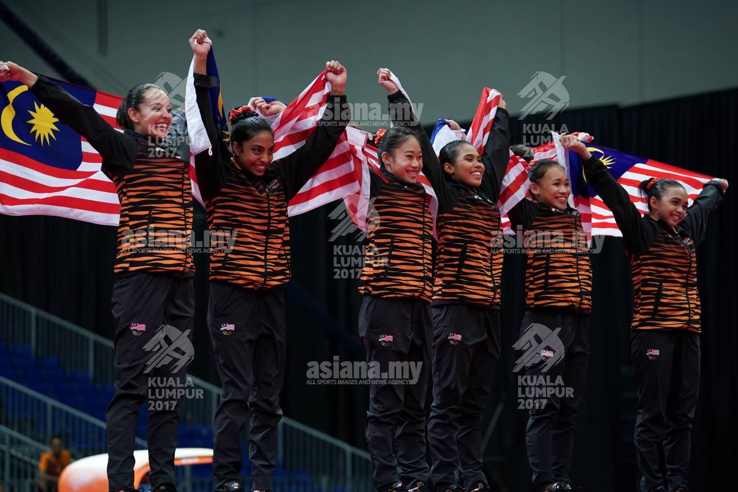 21 August 2017, 29th Sea Games Kuala Lumpur 2017, MITEC, 21h August 2017,Philippines, Singapore, Gymnastic Artistic Women Team Final,Victory Ceremony,