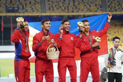 26 August 2017,Athletics, 29th SEA Games, National Stadium, KL Sports City, on 26 August 2017, Photo by Capt Rozmi | MASOC,Victory Ceremony,Men's 4 x 400 m,Philippines (Bronze),