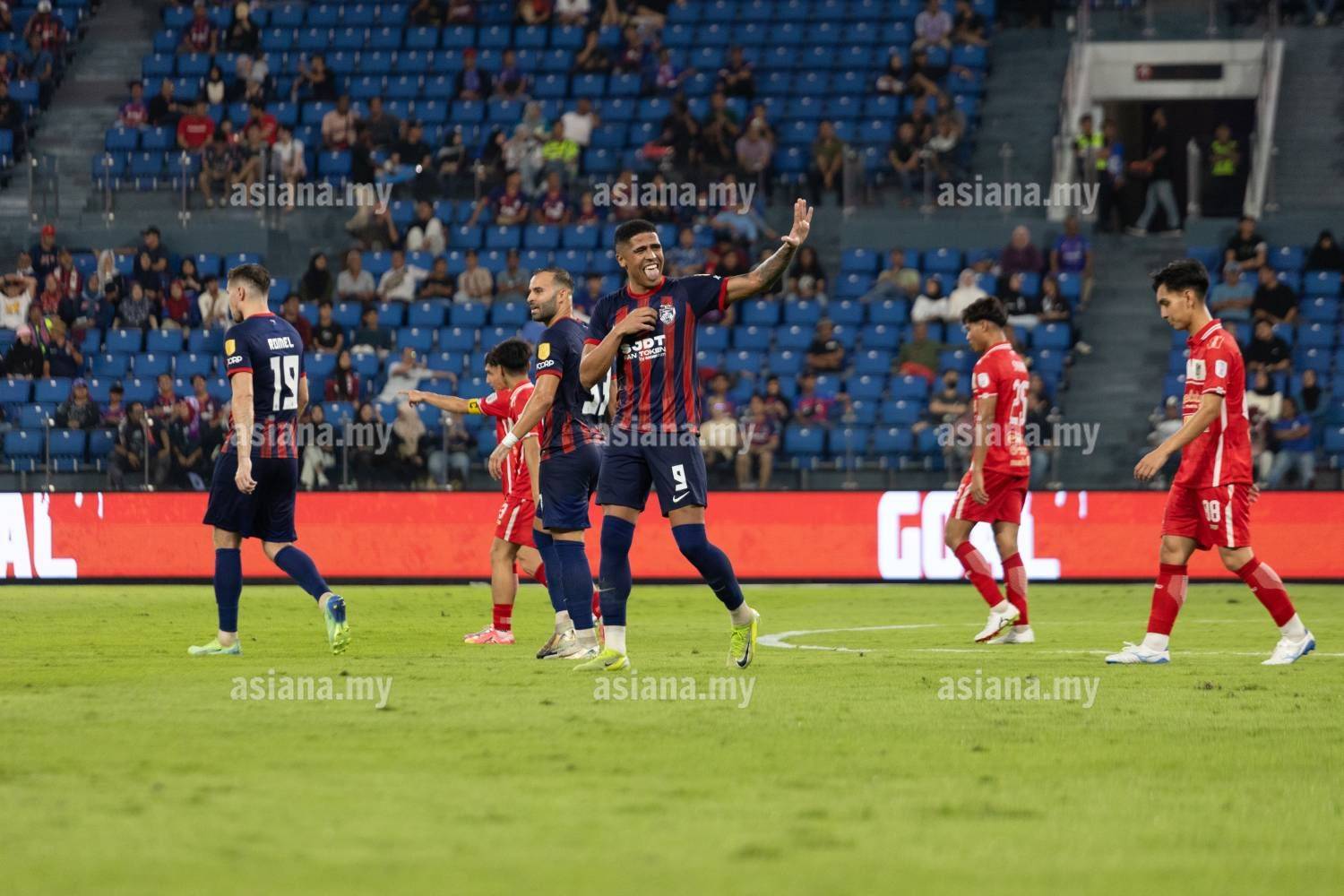 JOHOR DARUL TA'ZIM VS KELANTAN DARUL NAIM FC,Liga Super 2024/25,10 April 2025,Stadium Sultan Ibrahim,Iskandar Puteri,Afzal Akbar(11),Romel Morales (19),